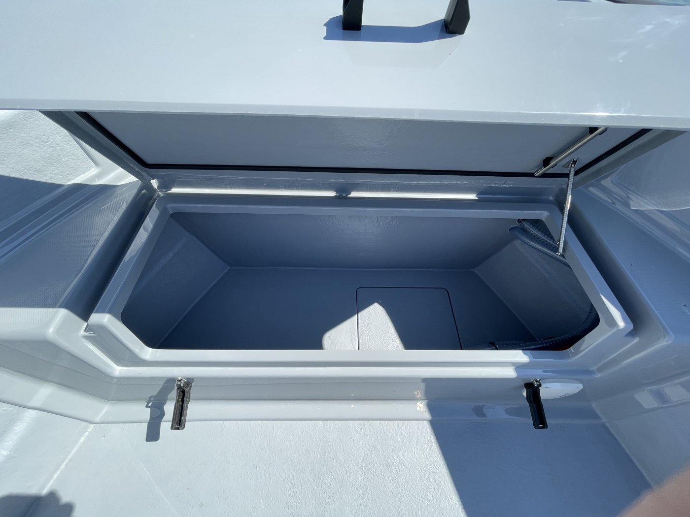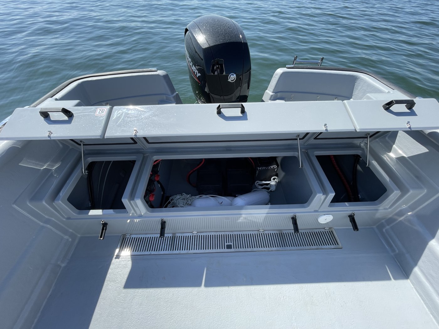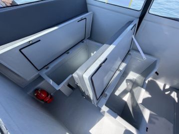 Kalaveneeksi 725 Pro Cabin XL käy Suomessakin, mutta täällä sen ensisijainen rooli lienee yhteysvenemäisempi. Jos viiden hengen hytti riittää, on Stingin kuljetuskyky hyvä, sillä syvällä korkeiden laitojen suojassa olevaa kansitilaa on runsaasti: sekä etu- että takakannelle mahtuu hyvin vaikkapa isompien kodinkoneiden toimituspakkaus mökkisaareen vietäväksi ja ympärikuljettavan hytin sivuille jää kuljetustilaa pidemmillekin lautakuormille. Hyvällä säällä keulapenkki ja leveä takapenkki tarjoavat hytin ohella istumapaikkoja.