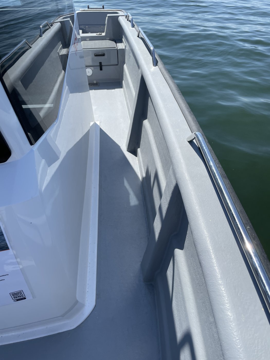 Pyyhkimelle on myös käyttöä, sillä keulan muotoilu nostaa jo tyynessä kuvausveneen peräaaltoja leikatessa pärskeitä tuulilasille. Vaikuttaa siltä, että aivan keulassa on joku kohta, johon osuessa runkoa pitkin ylös ohjautuva aalto hajoaa ja päätyy ilmaan tiheänä roiskepilvenä.