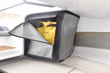 Säilytystiloja tosin ei ole mitenkään erityisen ruhtinaallisesti, joskin useimpiin tilanteisiin ja reissuihin riittävästi. Etenkin pääsäilytystiloihin lukeutuvien avotilan sohvien alla olevien lokeroiden käytettävyyteen voisi kiinnittää enemmän huomiota. Yamarin oli patjojen kanssa reilusti avautuvien luukkujen ja niiden varustamisessa kaasujousilla eturintamassa, mutta ajetuissa protoveneissä luukut avautuivat huonosti eikä kaasujousia ollut. Tuotantoveneisiin tilanteen kuitenkin lupaillaan parantuvan.