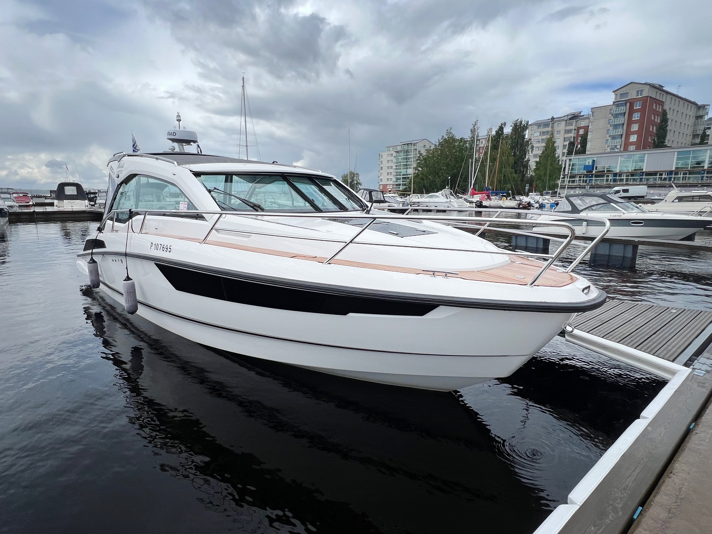 Veneen hintapyynti oli lähes 190 000 euroa, mikä voi ensi silmäyksellä tuntua korkealta, kun ottaa huomioon, että uuden vastaavan veneen hinta samoilla moottoreilla liikkuu noin 215 000 euron tuntumassa. Toisaalta kyseinen yksilö on varustettu useilla lisävarusteilla, kuten tutkalla ja perän sähköisellä ankkurivinssillä, jotka nostavat sen arvoa. Ja kuten tiedetään, hintapyynti ja toteutunut kauppasumma ovat usein kaksi aivan eri asiaa.