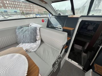 Norjalaisen Espen Thorupin piirtämä 880/900 ST on perhevene parhaimmillaan. Ohjaamon ja salongin ympärille kaartuvat kookkaat tuuli- ja sivulasit, ja koko haitarikatto on avattavissa, joten matkustamoon saa hetkessä avoveneen tunnelman. Vene mukautuukin luontevasti niin helteiseen kesäpäivään kuin harmaampaan matalapaineeseenkin.