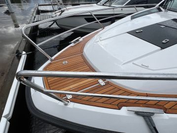 Myös liikkumiseen veneessä on panostettu. Tuulilasiin integroitu kulkuaukko helpottaa siirtymistä keulakannelle, ja sivukannet kiertävät veneen molemmin puolin. Vaikka ne eivät ole erityisen leveät, liikkuminen tuntuu melko turvalliselta kaiteiden ja katolle sijoitettujen käsikaiteiden ansiosta.
