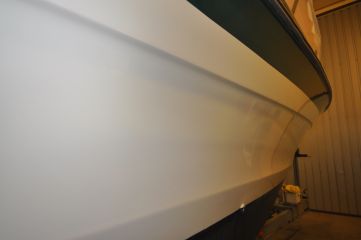 TFC-käsittelyn tuloksesta tuli upea, kun pinta puhdistettiin ensin Cleaner Wax -puhdistusvahalla ja viimeisteltiin TFC-pinnoitteella. Tasaisesti säihkyvä vene laskettiin veteen.