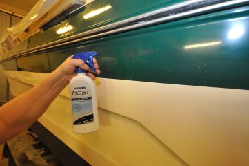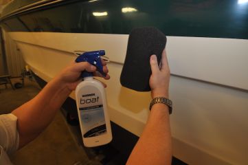 Korrekin Boat -hoitotuotesarjaan kuuluu kaikkiaan viisi tuotetta. Tässä keskitytään pestyn pinnan syväpuhdistukseen Cleaner wax -puhdistusvahalla ja pinnan viimeistelyyn perinteisen suojavahan korvaavalla TFC UV Coating -pinnoitteella.