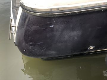 Esimerkkinä toimii vuosimallia 2000 oleva moottorivene, joka on uutena tilattu tehtaalta tumman sinisellä gelcoatilla. Vuosien saatossa alkuperäinen sinisen sävy oli kuitenkin siinä märin kadonnut, että luonnossa ja vähääkään kauempaa katsottuna runkoraita näytti pikemminkin mustalta. Lähitarkastelu puolestaan paljasti monia pienempiä naarmuja, muutaman paikkausjäljen ja haalistuneen, sinisestä pikemminkin violettiin taipuvan sävyn.