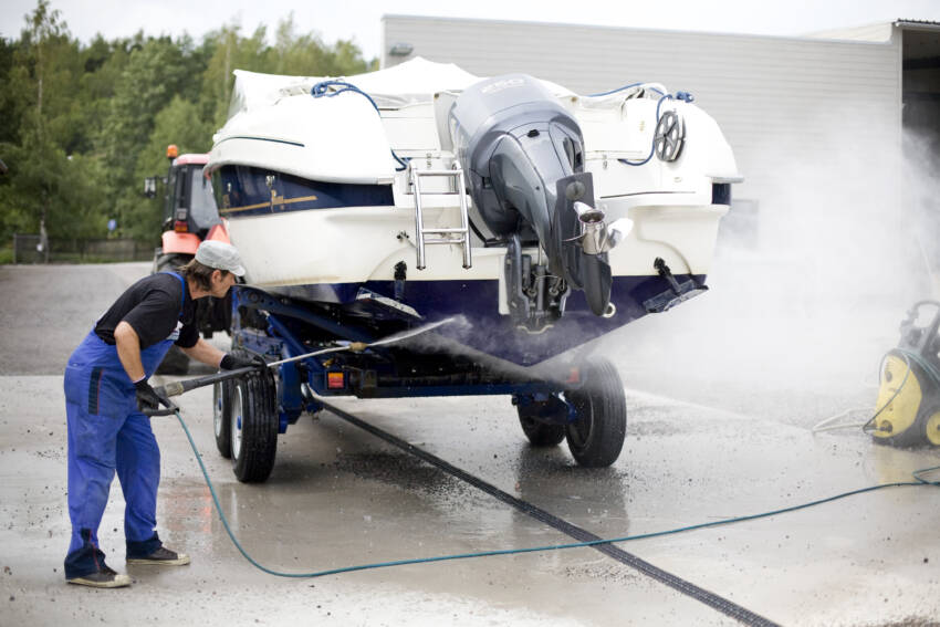 Nosta vene ylös ja pese veneen pohja