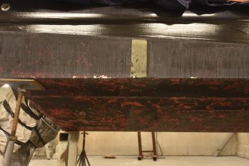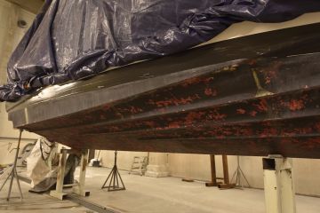 Veneen nosto ja pohjan painepesu vahvisti tilanteen. Pohja oli pesun jäljiltä kauttaaltaan rivosti ruvella. Tarvittaisiin pohjan perusteellinen kunnostus.