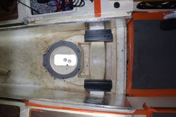 Uuden vetolaitteen tiivistämisessä käytettiin vesitiivistä kontaktiliimaa, joka soveltuu tarkoitukseen varsin hyvin. Uusi vetolaite sopi asennusaukkoon lopulta hyvin ja se saatiin vaivattomasti linjattua kölin ja peräsimen kanssa.