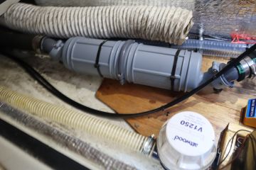 Pakoletkun uusi vesilukko paikoillaan. Nyt se asettuu siististi vaakatasoon moottoritilan pohjalle.