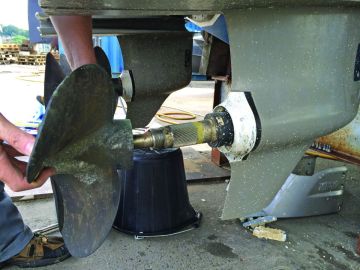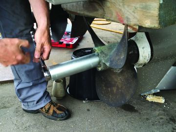 Tarvittavat materiaalit: Perä/vaihteistoöljyä, potkuriakselin voiteluainetta, tyhjennystulpan tiivistysprikka, täyttötulpan O-rengas, uusi rengasanodi.