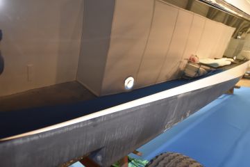 Tässä tapauksessa kohdeveneen runkoraita oli juuri maalattu mustaksi. Kestopinnoitteen asensi Kuopion seudulla Mirkan jälleenmyyjänä toimiva ja venepalveluita tarjoava Villen Vene.