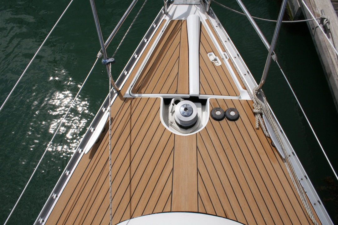 Espoon Venepalvelu voi valmistaa kannen päällysteen alusta loppuun, tai veneilijä itse voi liimata valmiit palat paikalleen. Tarttumista parantaa pohjasta uritettu materiaali.