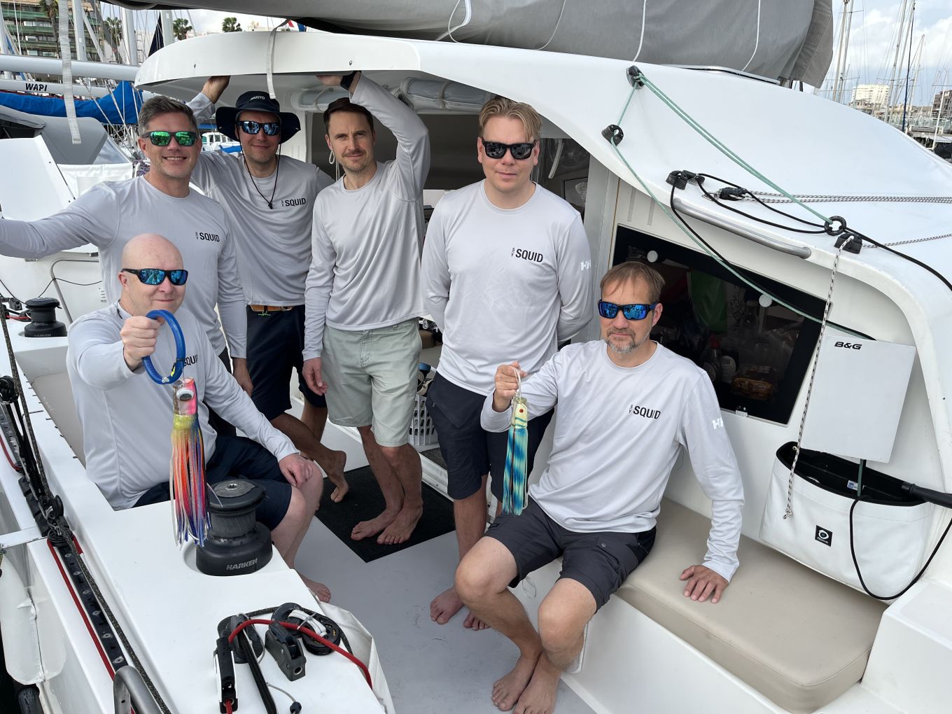 Toinen ennakolta kilpailun nopeimpiin kuuluva vene on katamaraani Marsaudon TS42 Squid, ja senkin miehistössä on tuttuja nimiä meikäläisiltä kisaradoilta. Tällä kertaa taustaa on etenkin Formula 18 -luokasta. Veneen omistavat Markus Ahonen, Janne Kjällman ja Marko Mäki, miehistöksi ylitykselle lähtevät myös Oskari Alho, Janne Riihelä ja Kennet Rehn.