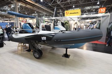 Miltä kuulostaisi alumiinirunkoinen ribbi, joka on varustettu ponttoneista esiin taittuvilla, sähkömoottorilla vetävillä pyörillä...