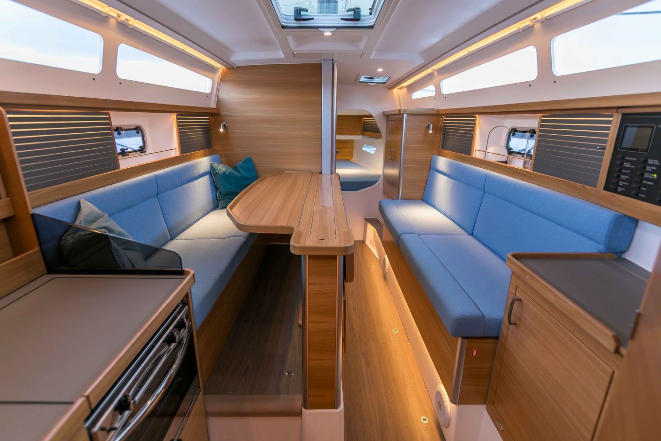 Suorituskyky on hyvä ja mukavuutta ajossa lisäävät monet yksityiskohdat: avotilaa suojaavat korkeat reunukset, kansisalonki tasoittaa sisä- ja ulkotilojen korkeuseroja, kumiset liukuesteet ovat erittäin tehokkaat, teleskooppiköli antaa säätää kulkusyvyyttä 1,2-3,0 metriin ja työn jälki on kauttaaltaan huipputasoa. Sisätiloihin tulvii luonnonvaloa ja näkyvyys on jatkuvasti hyvä niin merelle kuin purjeisiin."