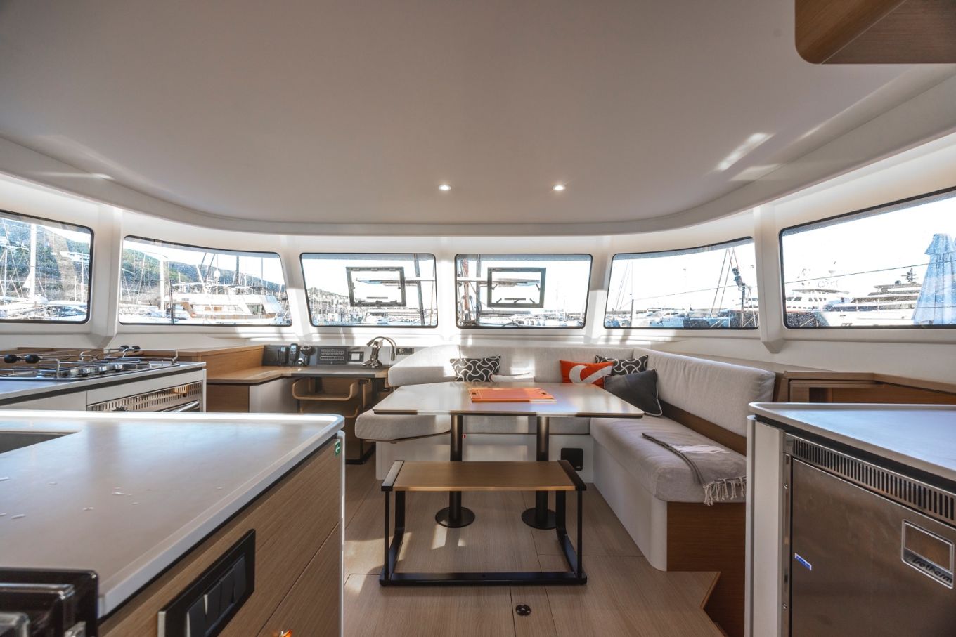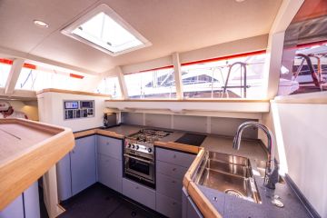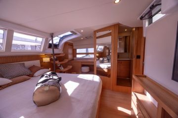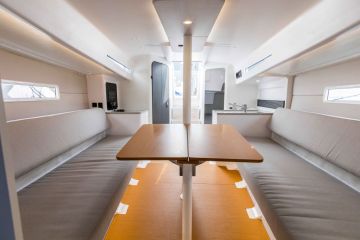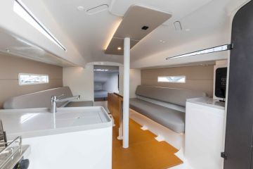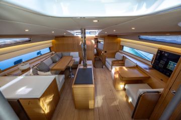 Sisältä vene on valoisa, minimalistinen, ilmava, mutta pirteä. Se tuo mieleeni kiitettyä pohjoismaista muotoilua 1960-luvulta ja tyyli epäilemättä on myös kohderyhmän mieleen. Excess jättää vaikutelman huolellisesti suunnitellusta ja hyvin toteutetusta veneestä."