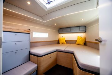Dragonfly 36:n arvoa nostaa vielä se, kuinka vakuuttavasti se yhdistää suorituskyvyn mukavuuteen. Huolella mietitty muotoilu ja aiempiin malleihin verrattuna suurempi tilavuus rungoissa vesilinjan yläpuolella kasvattavat asuintiloja yllättävän suuriksi kokoluokkaan nähden. Tämä ei ole kompromissien, vaan nopeuden, turvallisuuden ja asuttavuuden synteesi. Tämä vene on edistysaskel purjehdukselle."