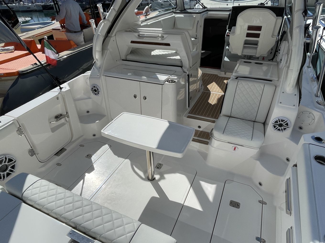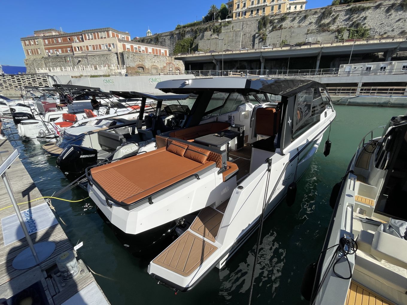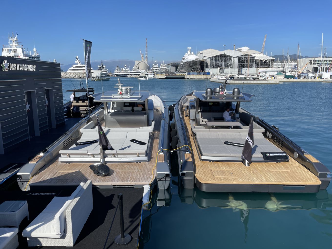 Paikalliset Azimut-Benetti, Ferretti Group ja Sanlorenzo Group ovat Genovassa paalupaikoilla. Isojen jahtien rivin lisäksi kullakin on omat vieraspaviljongit.