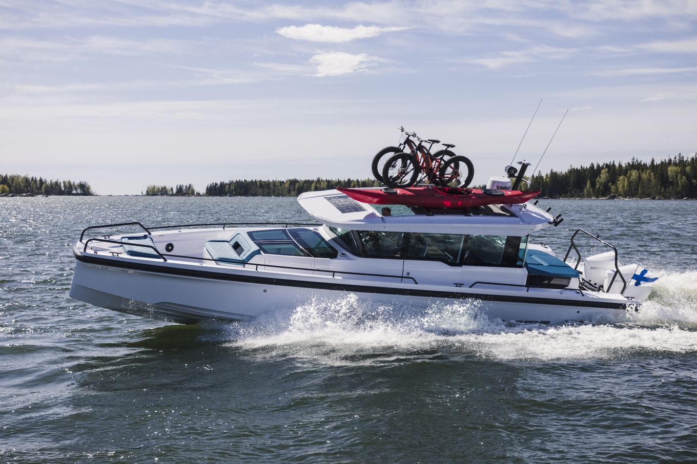 Varsinkin kahdella 300- tai 350-hevosvoimaisella perämoottorilla varustettavan, 11,5-metrisen Axopar 37:n myyntimäärä on kova saavutus. Varsinkin kun yhdentoista 37 XC:n lisäksi Suomeen myytiin viime vuonna yksi 37 ST -avomalli sekä kaksi Axopar 37:n Brabus Shadow 900 -luksusversiota.