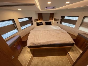 Tilojen osalta Northamnilla on ainakin kaksi ässää hihassaan. Toinen niistä on hulppean kokoinen keulakajuutta, joka on kuin suoraan 50-jalkaisesta jahdista konsanaan. Keulakajuutan lisäksi majoituskannelta löytyy kolmen vuodepaikan keskikajuutta sekä erillisellä suihkukomerolla varustettu toiletti.