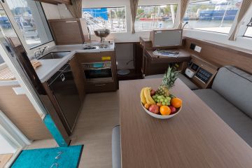 Katamaraanit ylipäätään vetoavat ostajiin isoilla ja hulppeilla oleskelutiloilla, joista on mainio näkyväisyys ympäristöön. Lisäksi ne tarjoavat kallistelemattoman ja vakaan veneilykokemuksen. Niin myös Lagoon, ja se on myös sisustettu hyvällä maulla.