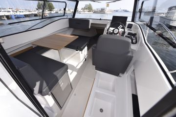 Esimerkiksi avotilaa saa valittua taittuvalla selkänojalla varustetun peräpenkin, pöydän ja vaikka aurinkotason. Ohjaushyttiin saa järjesteltyä kuskin paikan lisäksi neljä istumapaikkaa joko pöydän ääreen vastakkain tai kasvot menosuuntaan istuen. Styyrpuurin puolelta löytyy pentterikaapisto.