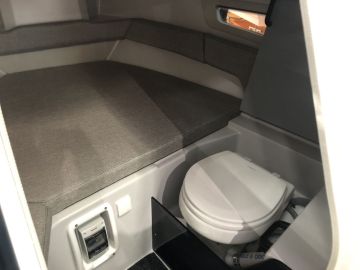 Kajuuttaa on tarkoitettu ja mitoitettu yöpymiseen ja asiointiin, ei varsinaisesti oleskeluun. Makuulavetti on käyttökelpoisen kookas, ja kasvaneet mitat ovat mahdollistaneet vuoteen päätyyn paikan lisävarusteiselle vesi-wc:lle. Se on sähkötoiminen, eli pumppaamisen sijaan huuhteluun riittää napin painallus. Pienessä tilassa toimiessa sitä osaa arvostaa.