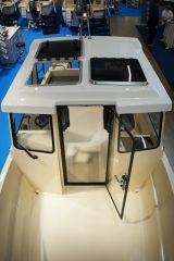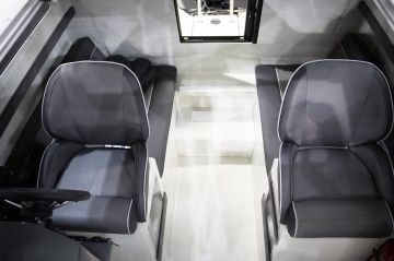 Kipparille ja vänkärille on varattu omat jakkarat, mutta muu seurue istuu perän tuhdolla jonkin verran säille alttiina. Tosin peränkin saa tarvittaessa suojattua kuomulla. Lisää kuljetuskapasiteettia tarjoaa erittäin leveä keulaosa, joka mahdollistaa tavaroiden ja varusteiden helpon lastaamisen. Keula hyötyisi pienistä askelmista kopin edessä, jotka parantaisivat turvallisuutta ja helpottaisivat laiturille nousua kylkikiinnityksessä.