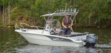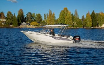 T-top-katos on maailmalla yhä halutumpi varuste myös avo- ja pulpettiveneissä. Suvi tuo etenkin kalastuskäyttöön tarkoitetun lyhyen T-topin lisävarusteeksi kaikkiin 57- ja 63-sarjan malleihin.