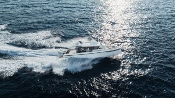 Saxdorin kymmenmetrinen ja kahdella perämoottorilla varustettava 340 GTWA kuuluu ennakkoon messujen odotetuimpiin uutuuksiin. Se on Saxdorin ensimmäinen ympärikuljettavalla hytillä varustettu WA-malli, ja sellaisena puhuttelee varmasti myös isojen yhteysveneiden luokassa aiemmin lähinnä Targoja, Sargoja tai Nord Stareja silmäilleitä. Saxdorin tapaan sekä ulko- että sisätiloja ja niiden toiminnallisuuksia on paljon, ja toki. mukana on myös sähkötoimisesti avattavat laitaterassit.