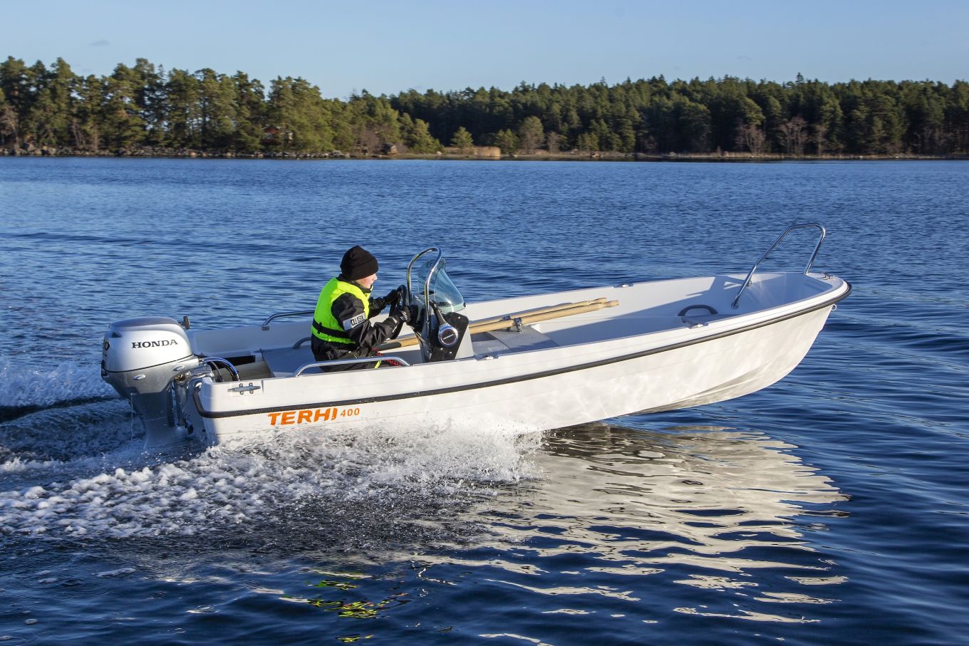 Terhi ensiesittelee messuilla kolme pulpettiveneuutuutta. Niistä pienin on jo alussa mainittu keskipulpetilla varustettu 400 CC. Sen parina tulee 20-hevosvoimainen Honda, pakettihinnaksi ilmoitetaan 8 990 euroa.