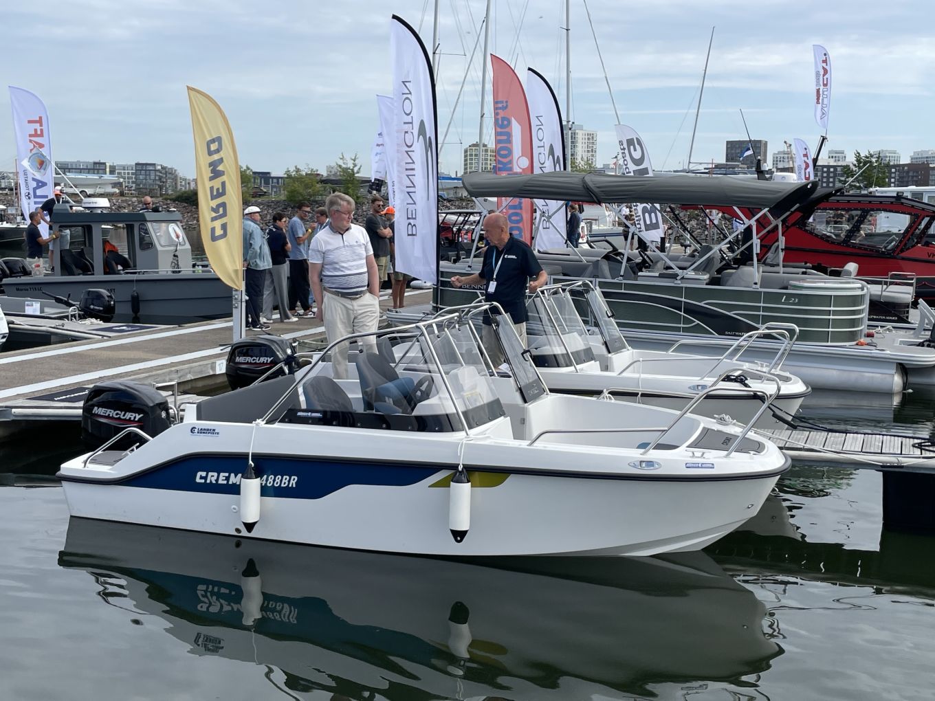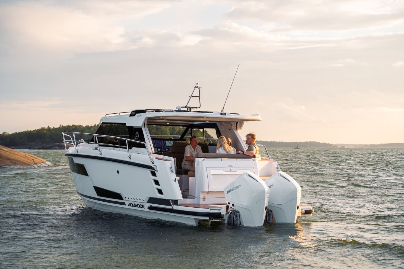Aquador tuo venemessuille koko uuden sukupolven malliston, eli 250 HT:n, 300 HT:n ja ja viime vuoden uutuuksiin kuuluvan 400 HT:n. Keskimmäinen on kolmikosta vanhin, mutta venemessuilla se esitellään ensimmäistä kertaa Suomessa nähtävänä perämoottoriversiona. Moottoreina on kaksi Mercuryn 200-hevosvoimaista V6:sta, joilla varustettuna hinnat starttaavat 293 000 eurosta.