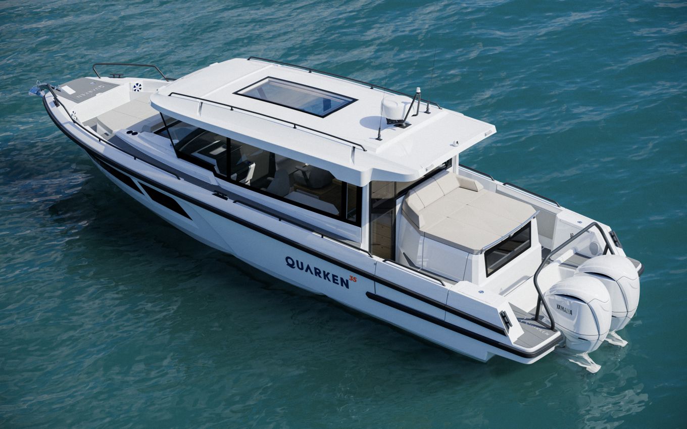 Samassa genressä Yamarin Auran ja Targa 30.1:n kanssa, mutta puoli kokoluokka ylempänä, liikkuu Quarken 35 Cabin Tourer, jonka takakajuuttaoptiolla varustettu versio on venemessuilla maailman ensiesittelyssä. Takahytti istuu Quarkeniin hyvin, ja tekee siitä suuremmallekin perheelle sopivan retki- ja matkaveneen. Moottoreina Quarken 35:ssa on kaksi 300- tai 350-hevosvoimaista Yamaa, ja takahytillä varustettuna hinnat alkavat noin 330 000 eurosta.