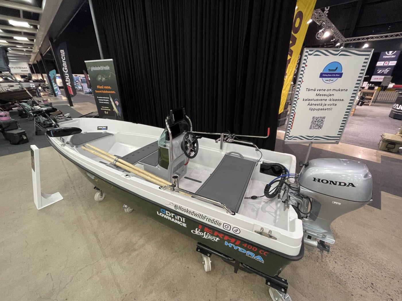 Nuoriso on varmasti yksi 400 CC:n kohderyhmä, kuten myös ahkerasti pienempiä vesialueita koluavat kalastajat. Messuilla esillä olevassa kalastusvarustellussa versiossa yhdistyy molemmat, se kuuluu 10-vuotiaan innolla kalapaikkoja koluavalle Pellinkiläiselle @hookedwithfreddielle.