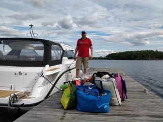 Alku aina hankalaa. Kun nelihenkinen perhe lähtee veneilemään lainaveneellä, on mukaan roudattava tavaramäärä suuri. Siitä vähän makua oheisella videolla.