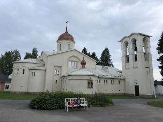 Valamon luostarille on matkaa nelisensataa metriä. Me saavuimme paikalle illalla, ja painelimme uteliaina suoraan luostarille. Alue on siisti, mutta rakennukset Kerimäen ja Heinäveden puukirkkojen fyysisen mahtavuuden jälkeen ulkoa pieniä ja vaatimattoman näköisiä.
