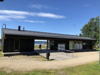 Ilmoittautuminen tehdään matkailu- ja viihdekeskus Hojo Hojon vastaanotossa muutaman sadan metrin päässä. Sieltä saa avaimen sähkötolppaan sekä sataman lähellä olevan rantamakasiinin siisteihin ja nykyaikaisiin suihku- ja wc-tiloihin. Sen yhteydessä olisi myös grillikota, muta sen lukkoon avain ei sovi.