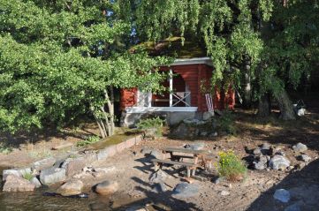 Pieni idyllinen saunarakennus näyttää leikkimökiltä mutta tarjoaa kunnon löylyt. Saunavuorot ovat saaren vieraiden välisen sopimuksen varainen asia. Saaren kaivovesi on vain peseytymistä ja kiuasta, ei juomista varten.