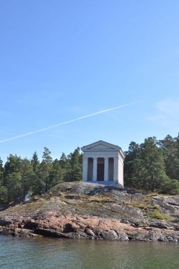 Saaren visuaalinen erikoisuus on vain vesiltä käsin nähtävissä oleva rakennus, luoteisosan yksityisalueen rannalla sijaitseva salaperäinen huvimaja, jonka pylväsarkkitehtuuri jäljittelee klassillista Poseidonin temppeliä.