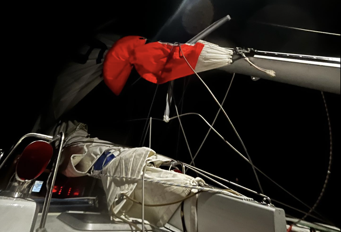 Tapio Lehtisen kipparoiman veneen isomasto katkesi Portland Billin kaakkoispuolella.