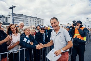 "Tämän saavutuksen arvoa kuvastaa se, että tuhannet ihmiset ovat löytäneet tiensä Mount Everestin huipulle, mutta vain kuusi ihmistä maailmassa on tehnyt sen, minkä Tapio Lehtinen on tehnyt", kuten purjehtijaa vastaanottamassa ollut Helsingin pormestari Jan Vapaavuori kiteyttää tervetuliaispuheessaan, ennen kuin luovuttaa ahavoituneen merikarhun Harry "Hjallis" Harkimon haastateltavaksi.