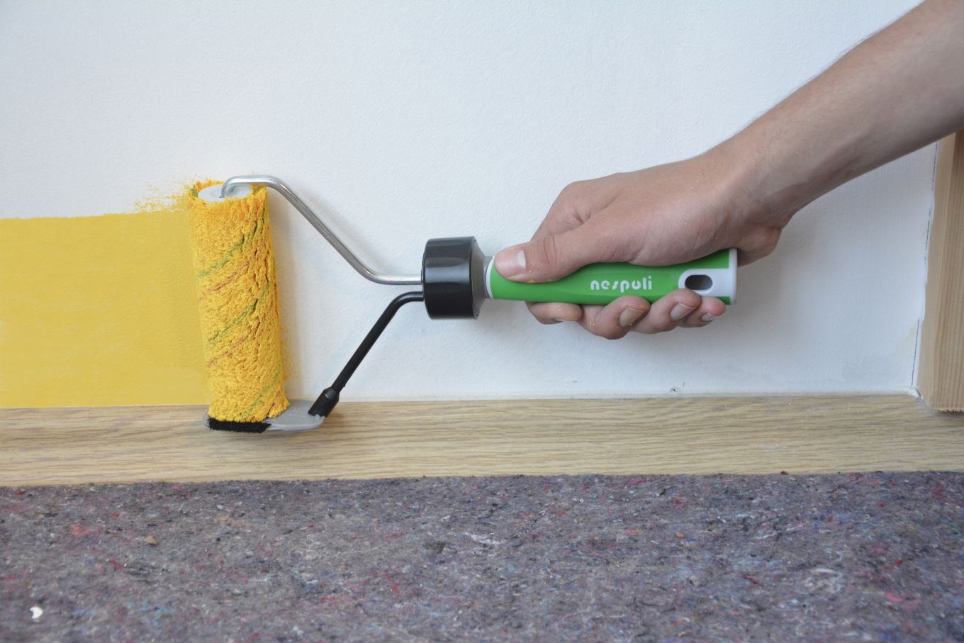 – Telaa pyöritellään maalauslaatikossa niin, että maali leviää tasaisesti koko telaan. Sen jälkeen sitä rullataan muutaman kerran seinään noin 40 senttimetrin alueella. Tällä varmistetaan tasainen jälki. Vasta sitten reunasuoja käännetään paikalleen ja ryhdytään rajaamaan, Kärppä neuvoo.