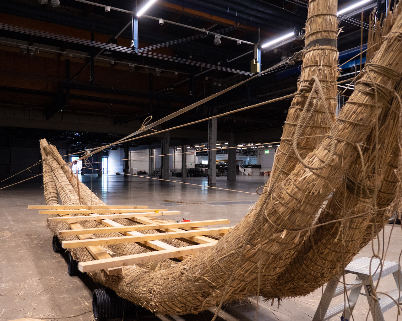 Kaislaveneen runko valmistui kahdessa viikossa Helsingin Messukeskuksessa, ja mukana rakentamisessa on ollut kaislarakentamisen ammattilainen.