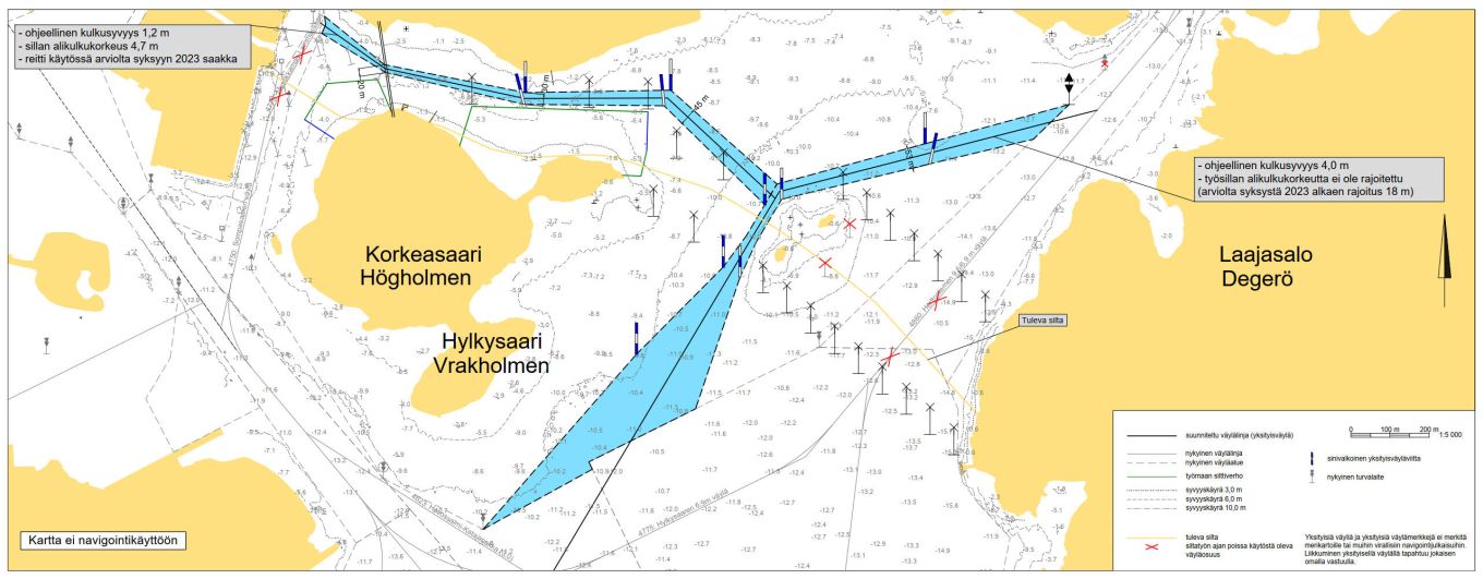 Tarkemmat ja päivittyvät tiedot hankkeen vaikutuksista vesiliikenteeseen löytyvät suomeksi: https://kruunusillat.fi/veneilijoille/ ja ruotsiksi: https://kruunusillat.fi/sv/for-batfolk/.