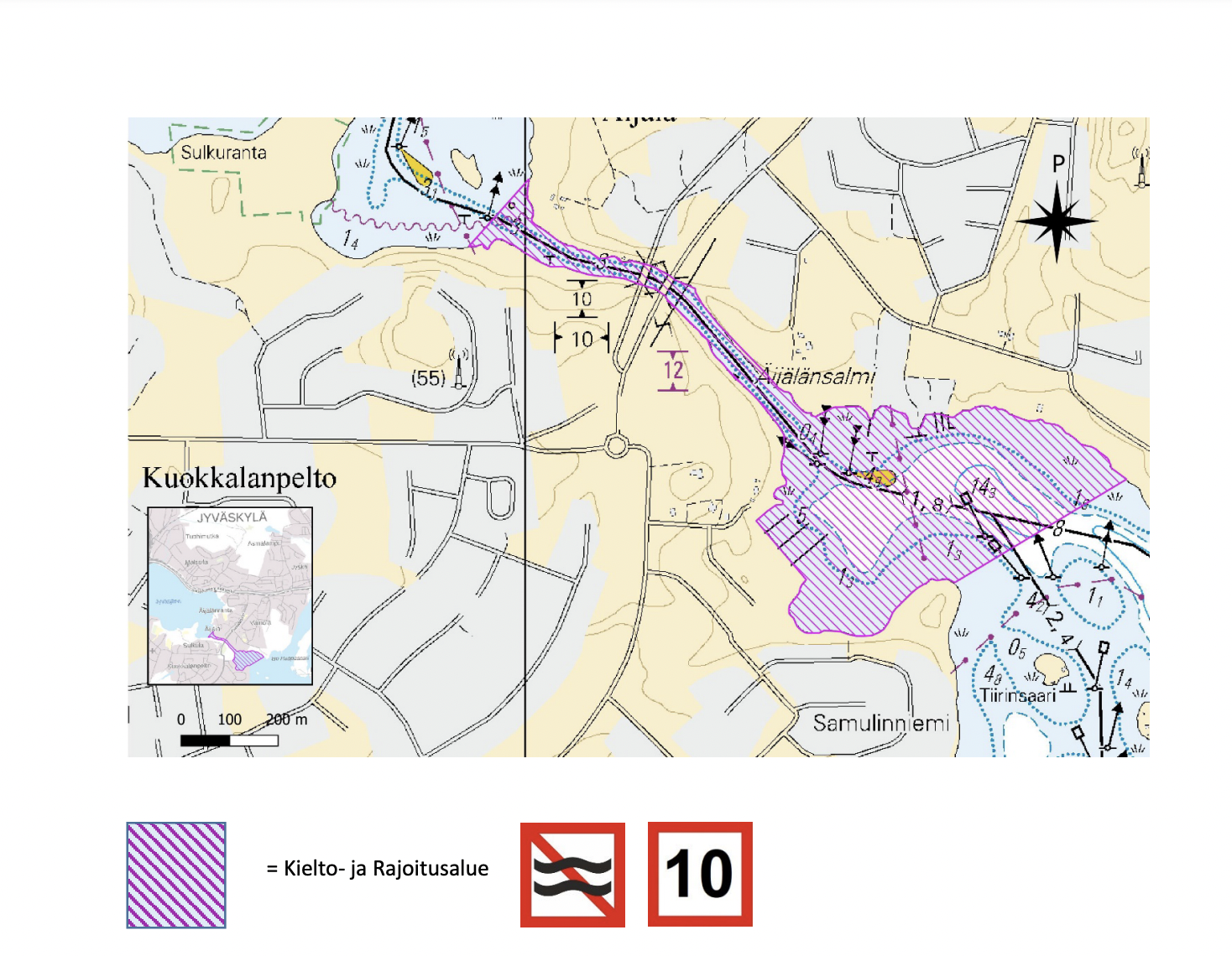 Jyväskylän Äijälänsalmen ja Väinölänrannan alueelle Päijänteellä Traficom muuttaa Keski-Suomen lääninhallituksen päätöksiä siten, että 7 km/h nopeusrajoitus muutetaan 10 km/h nopeusrajoitukseksi.