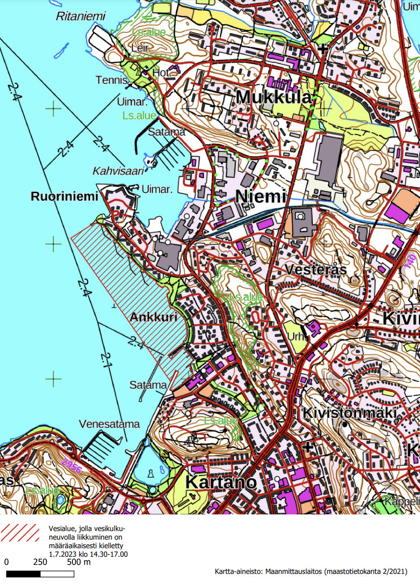 Liikenne- ja viestintävirasto Traficom määrää vesikulkuneuvolla liikkumisen kiellon Vesijärven sataman väyläosalle sekä väylän ulkopuoliselle vesialueelle. Kielto on voimassa 1.7.2023 klo 14.30-17.00.