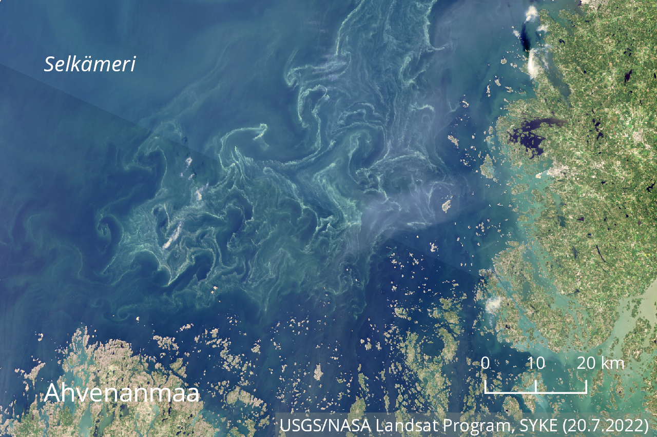 Satelliittikuvissa sinilevälauttoja ja veteen sekoittunutta sinilevää on havaittu Itämeren pääaltaalla ja laajalti Suomenlahden avomerialueella. Sinilevälauttoja esiintyy osittain veteen sekoittuneena myös Ahvenanmaan pohjoispuolella ja Selkämeren Suomen puoleisella avomerialueella Merenkurkkuun saakka. Satelliittikuvissa on havaittu sinilevää myös Saaristomerellä.