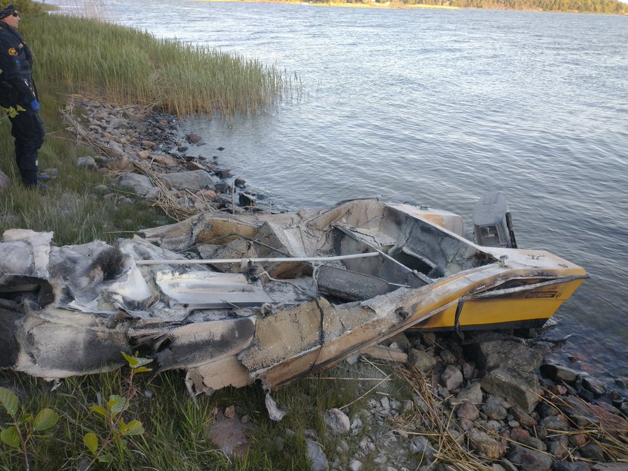 Kukaan ei loukkaantunut, mutta perämoottorivene tuhoutui palossa täysin.