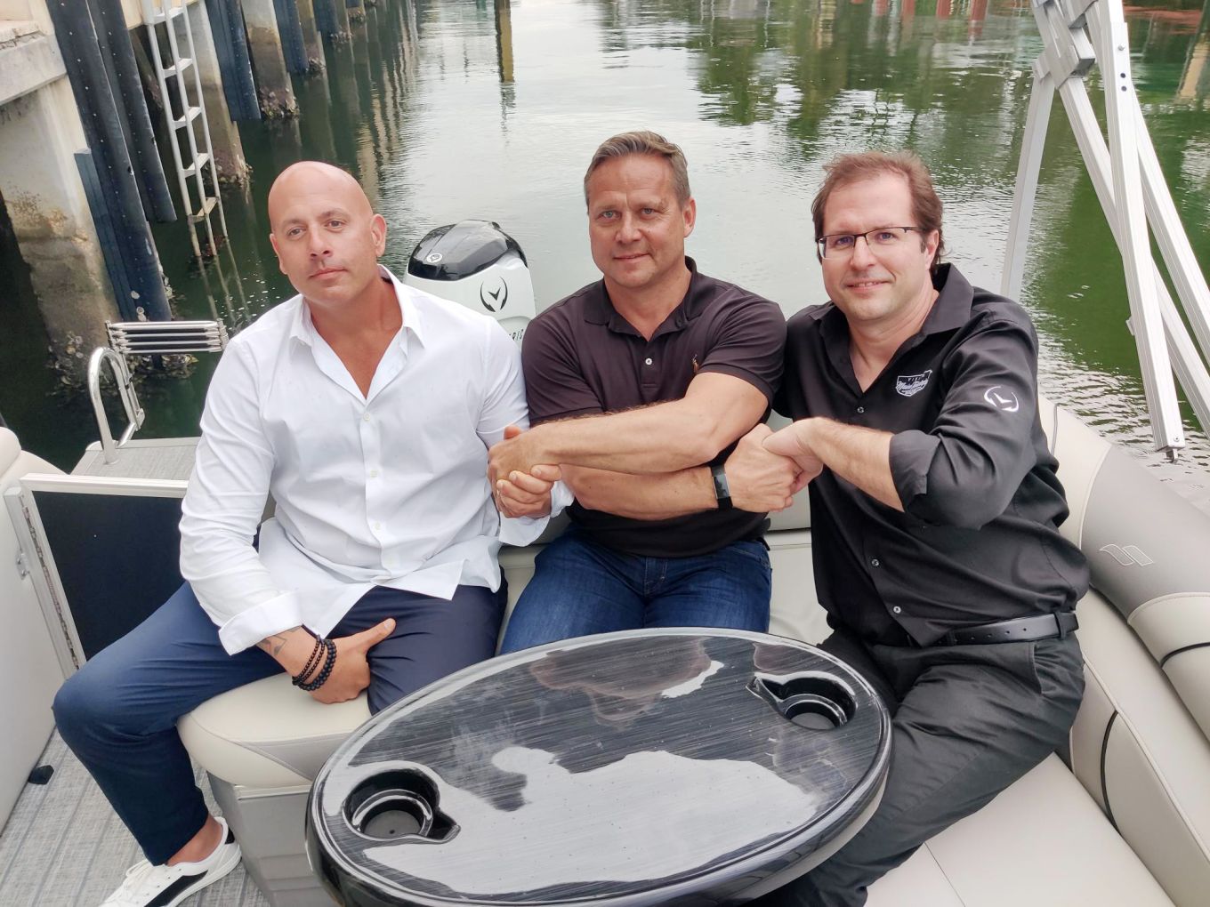 – Yhteistyö Nextfourin ja Q Experiencen kanssa mahdollistaa kattavan ja toimivan sähköistetyn ekosysteemin huviveneisiin ja täydentää sähköisen propulsiojärjestelmämme markkinoiden parhaalla ja intuitiivisella kosketusnäytöllä, iloitsee Vision Marine Technologiesin COO Xavier Montagne (oik.) yhdessä pääjohtaja Alexandre Mongeonin kanssa.