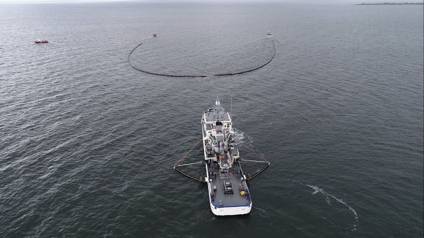 Nuotan perälle kerääntynyt öljy kulkee poijujen välisestä portista sen takana kulkevaan öljynkeräyskykyiseen alusyksikköön. Öljyä merestä keräävä alus on varustettu öljypuomein, jotka ohjaavat nuotasta tulevan öljyisen veden aluksen harjakeräimiin, jotka erottavat öljyn veden pinnasta ja ohjaavat sen aluksen keräystankkeihin.